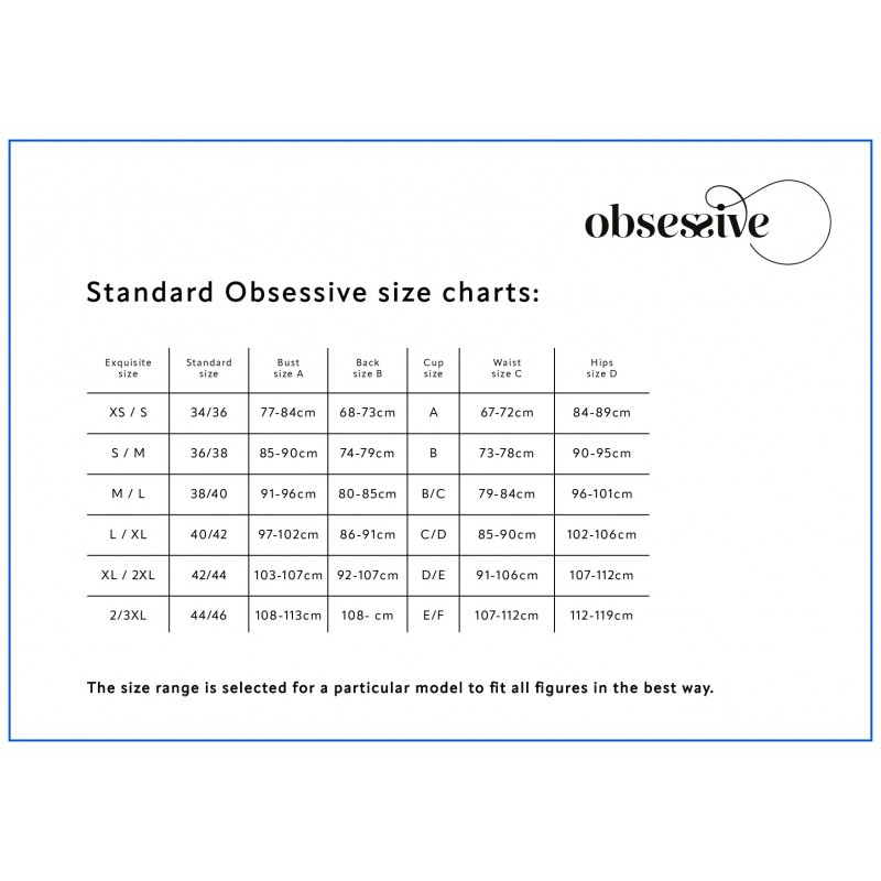 L'ensemble comprend un soutien-gorge en dentelle avec des bonnets souples et des armatures, un porte-jarretelles décoré d'une bande en dentelle supplémentaire et de son string séduisant.