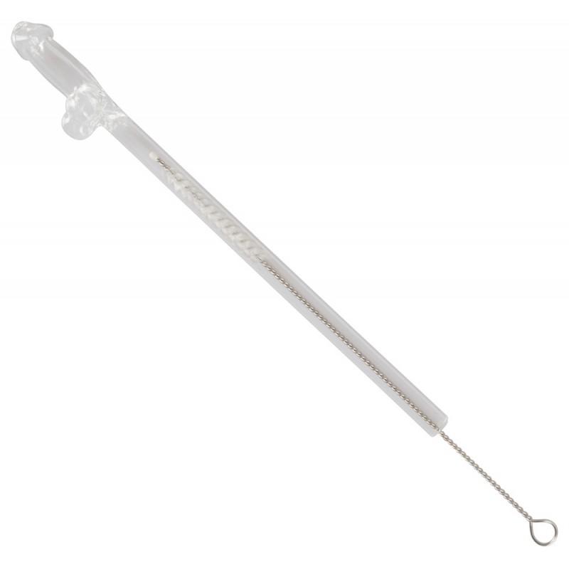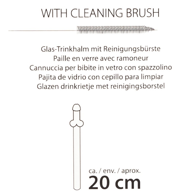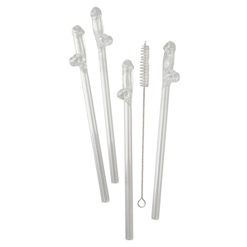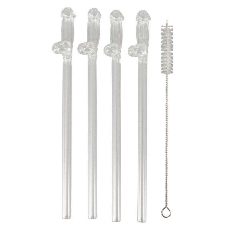 Paille en Verre en Forme de Pénis avec Brosse de Nettoyage Willy - 4 pièces