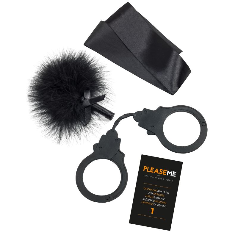 Le jeu inclus un ruban pour bander les yeux avec une bande de bondage, un fouet à plumes sans oublier les menottes, doux vous gâteront d’une façon amusante et imaginative.