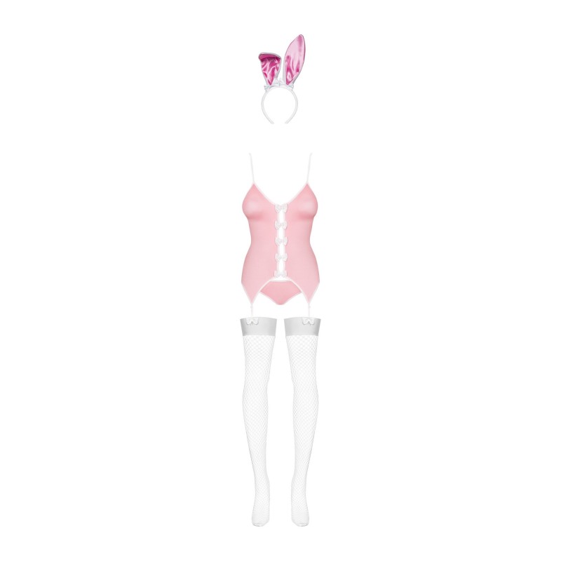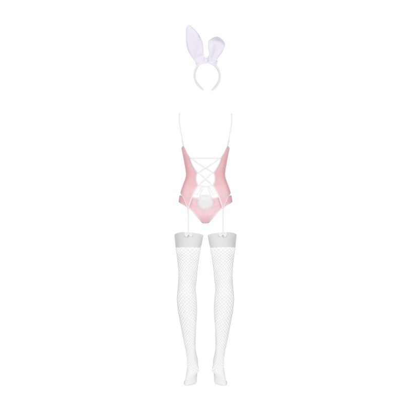 - le costume comprend un haut avec jarretelles, une culotte avec queue de lapin, des bas et des oreilles
