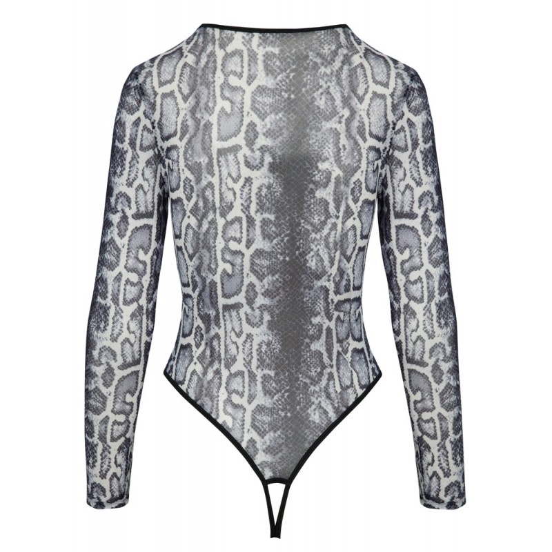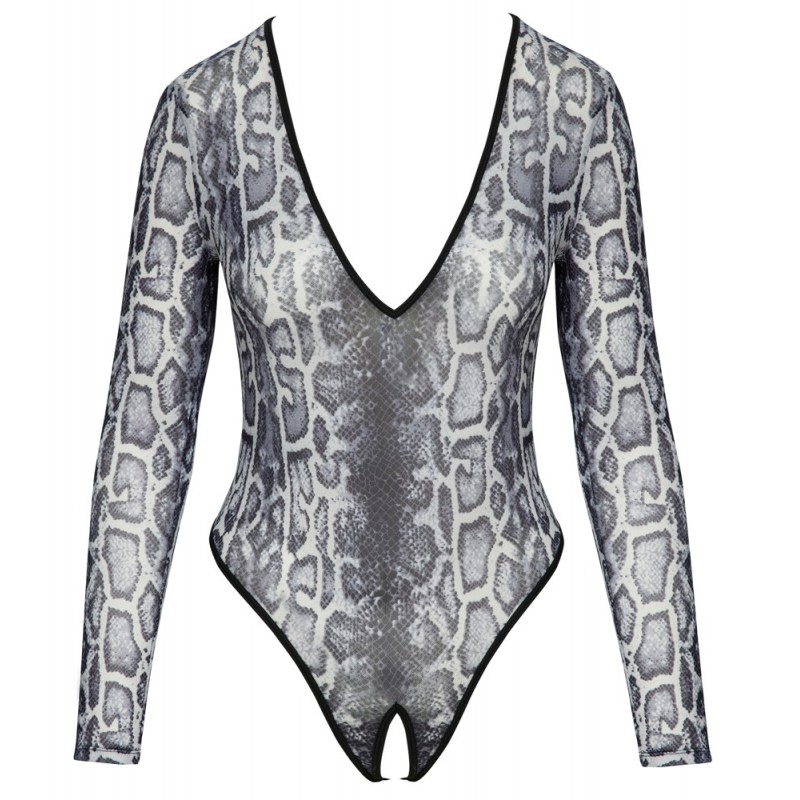 Body ouvert à manches longues et décolleté extra-bas de Cottelli LINGERIE dans un look peau de serpent. Entièrement réalisé en powernet fin et transparent avec un imprimé complexe. Élastique et doux sur tout le pourtour pour un grand confort. Le style riostring avec des découpes extra hautes pour les jambes met parfaitement en valeur les fesses et les jambes. Ouverture séduisante à l'entrejambe.