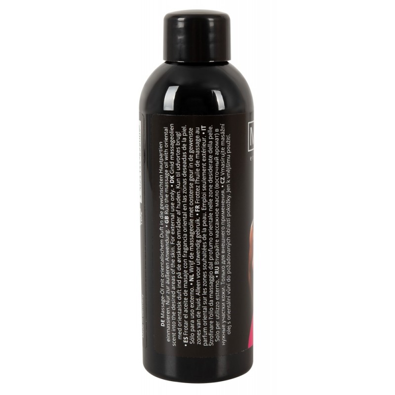 Huile de massage érotique haute qualité avec de l'huile de jojoba , garde son effet lubrifiant très longtemps. Au parfum original oriental qui peut aider à désinhiber. Fabriquée en Allemagne. Flacon de 100 ml.