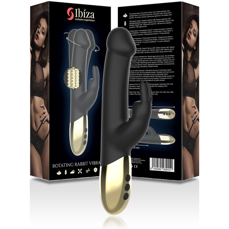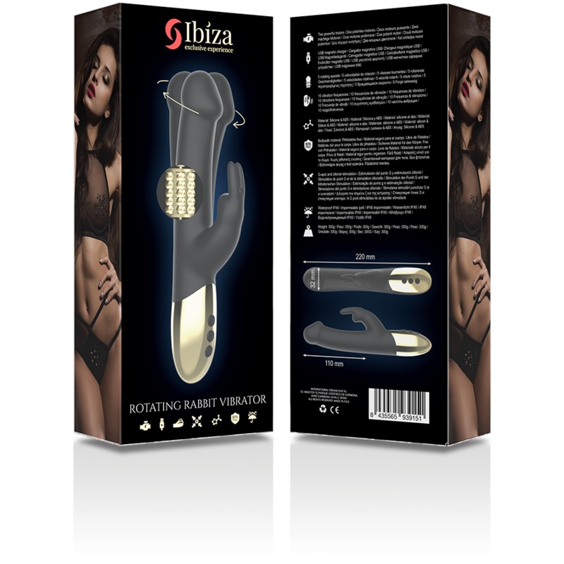 Le vibromasseur lapin salué par la critique s'est encore amélioré ! Fabriqué avec le silicone le plus doux et le plus sûr pour le corps dans de superbes couleurs fusion de noir et d'or. , IBIZA ROTATING AND RABBIT™ est le parfait masseur double action qui vous permettra d'obtenir un résultat satisfaisant. L'option de stimulation simultanée du point G et du clitoris vous permet de profiter d'une stimulation puissante et de libérer toutes vos inhibitions refoulées.