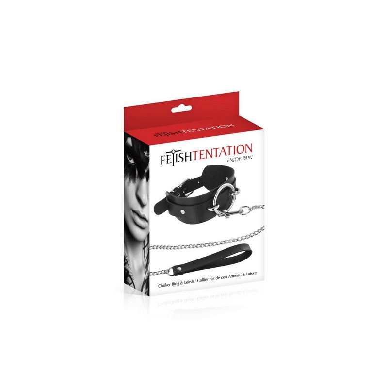 Collier large fétichiste avec anneau et laisse Fetish Tentation