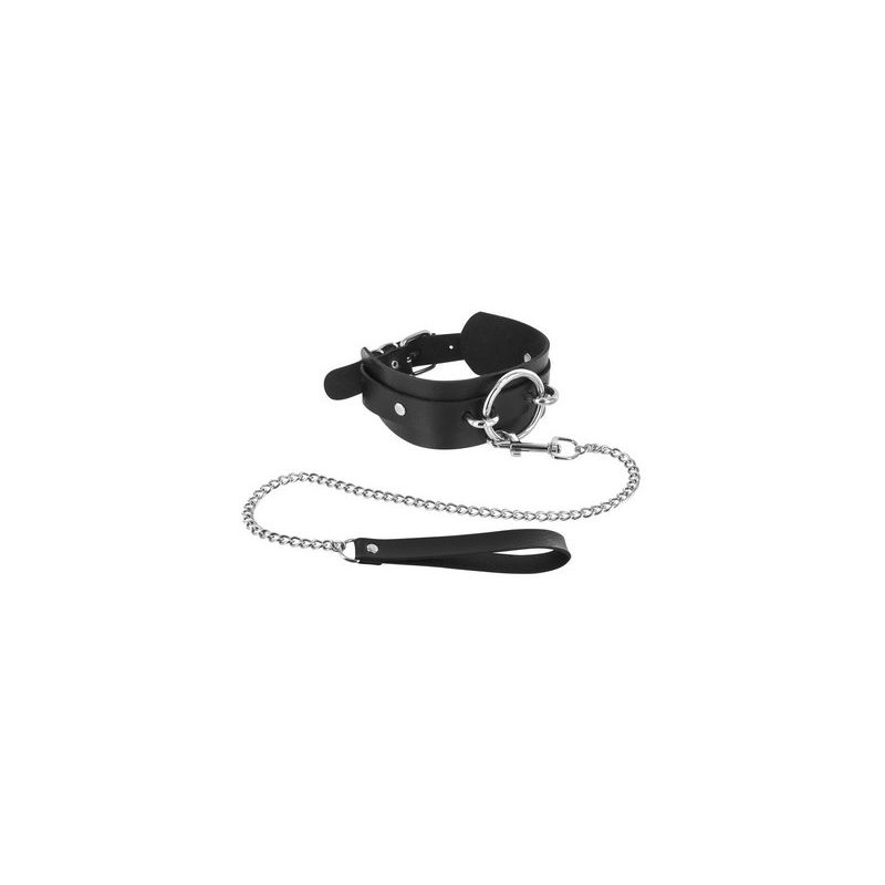 Collier large fétichiste avec anneau et laisse